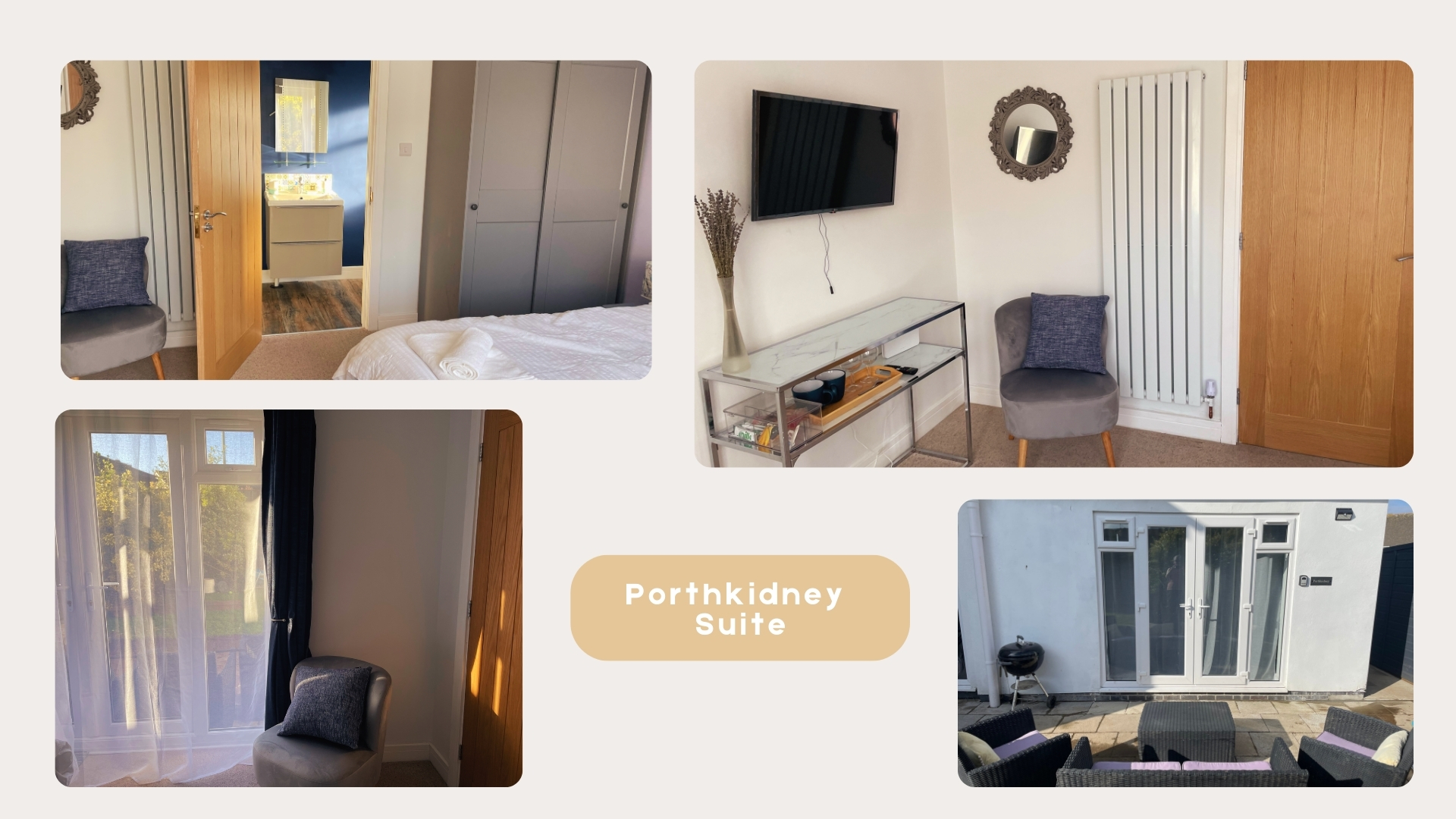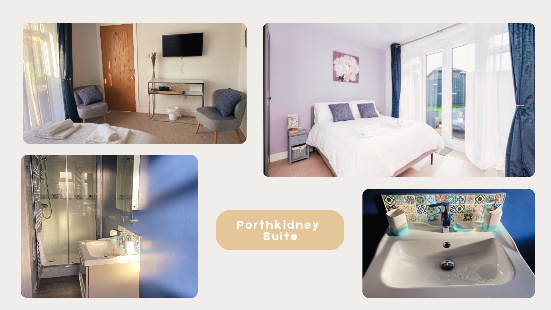 The room has French windows with blackout curtains to ensure you get a good night's sleep and voile curtains for added privacy during the day. The bedroom has a very comfortable double bed with bedside tables and lamps on both sides and a wardrobe with shelves for storage. Tea and coffee facilities are included and there are wine glasses and a mini-fridge to chill your wine. The ensuite bathroom has a sink, heated towel rail and a shower. Access to the rear garden is included with a garden seating area. Porthkidney Suite is accessed via the side of the main house, through a gate. There is a key safe outside the French windows to allow access to the rooms. The room has a wall-mounted smart TV where you can access Netflix etc. The suite is private and for sole use with its own entrance. Only the garden, parking and path are shared.