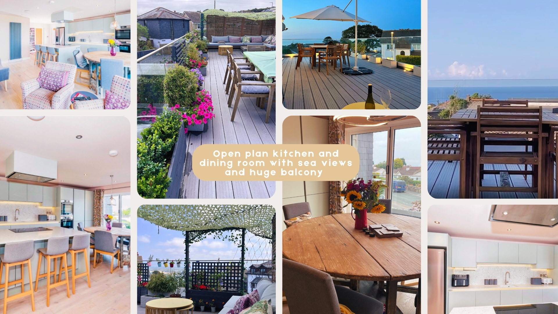 Tremarclyn is a luxurious, large, pet friendly property in Carbis Bay, St Ives, perfect for extended family and friends. This delightful and spacious modern home boasts 4 bedrooms, including 2 king beds, 2 full double beds, 2 with en-suite, as well as a family bathroom. At the heart of the home is a large reverse level open-plan kitchen dining area with sea views and bifold doors onto a huge balcony with additional far reaching views to the Hayle Estuary. The balcony has a cosy corner seating area with gas fire pit and duel fuel barbecue as well as table and chairs for al fresco dining and lounging. The large but cosy living room includes a small double sofa-bed. There is also a garden room for reading, relaxing and working. Full central heating and immediate hot water, utility room with washing machine and tumble drier. Off road parking for 4 cars. Max occupancy 10.